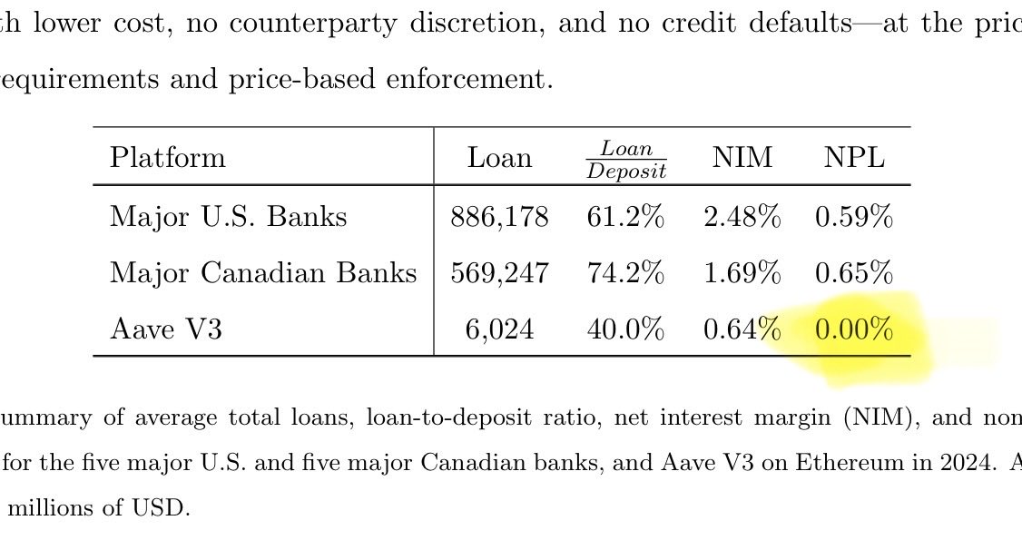 They found that @aave successfully facilitates billions in lending activity with zero non-performing loans, outperforming traditional banks in credit performance through its automated, overcollateralized design. https://t.co/MuasJ3ybmU