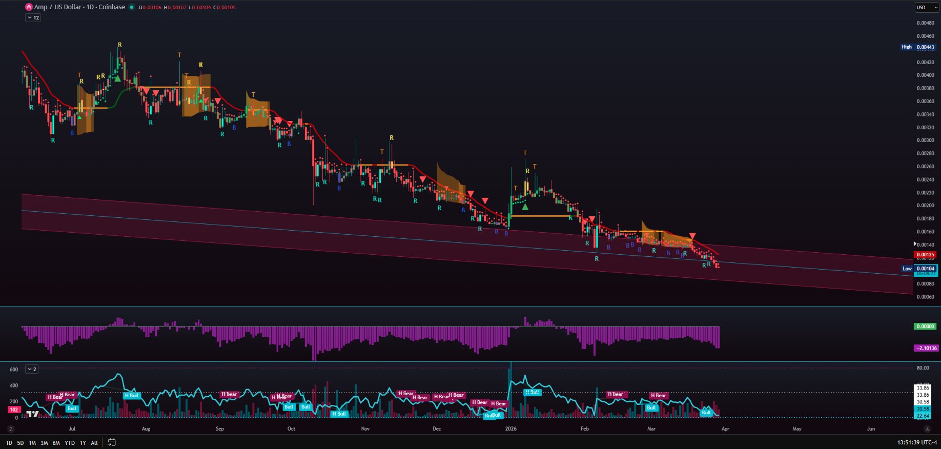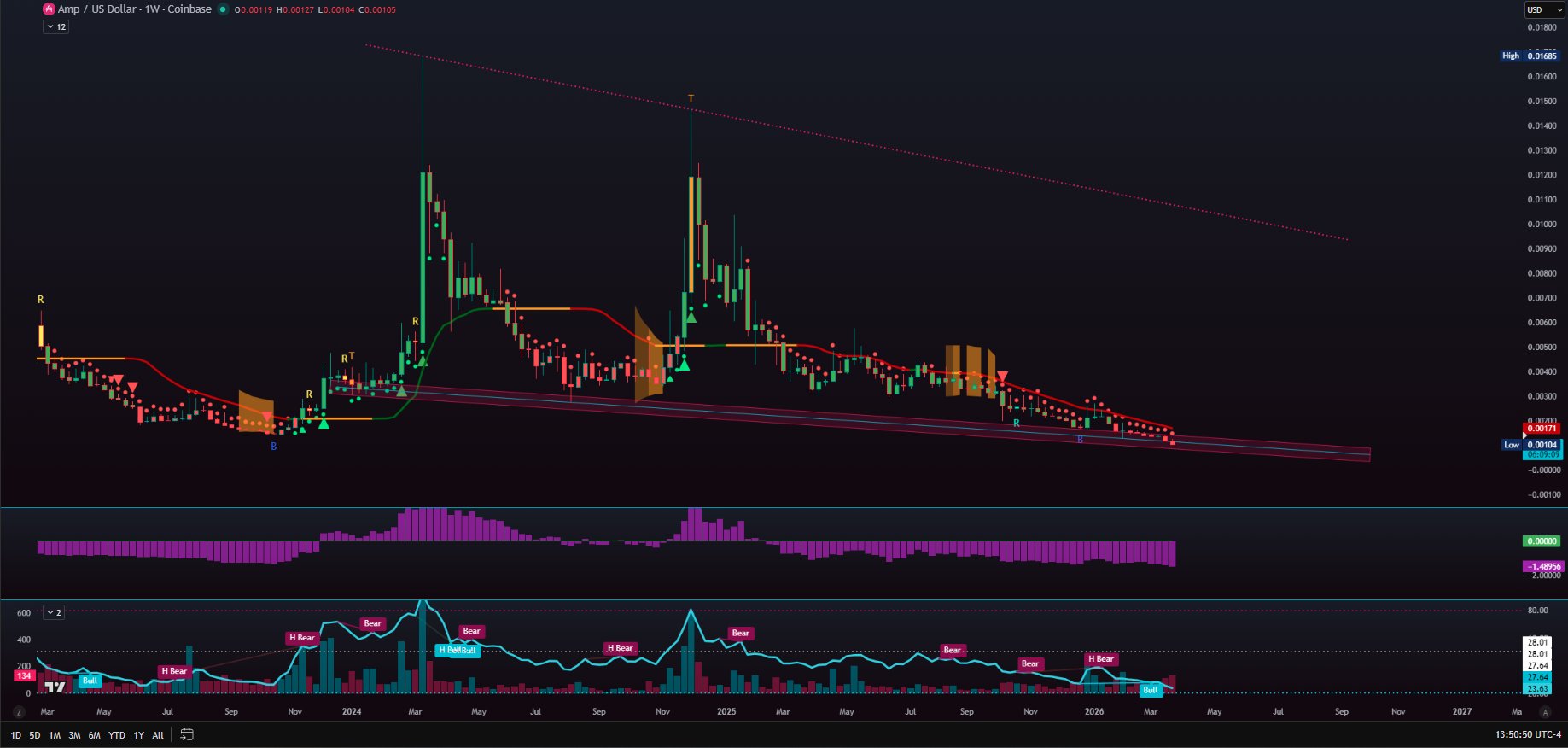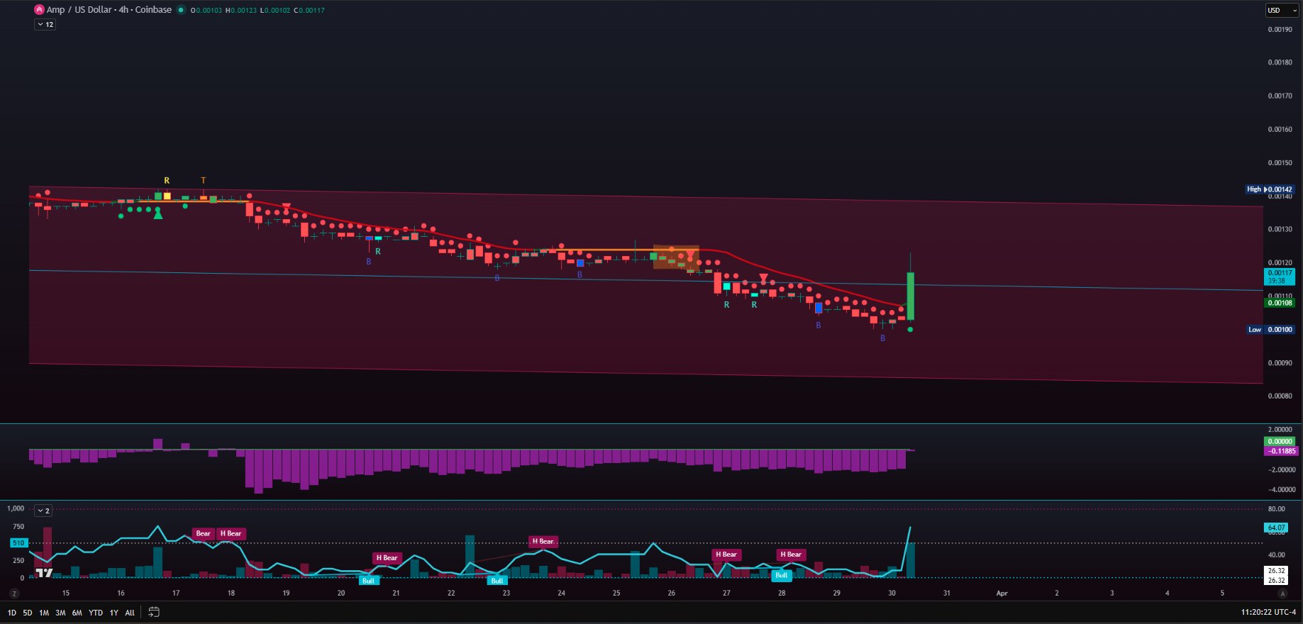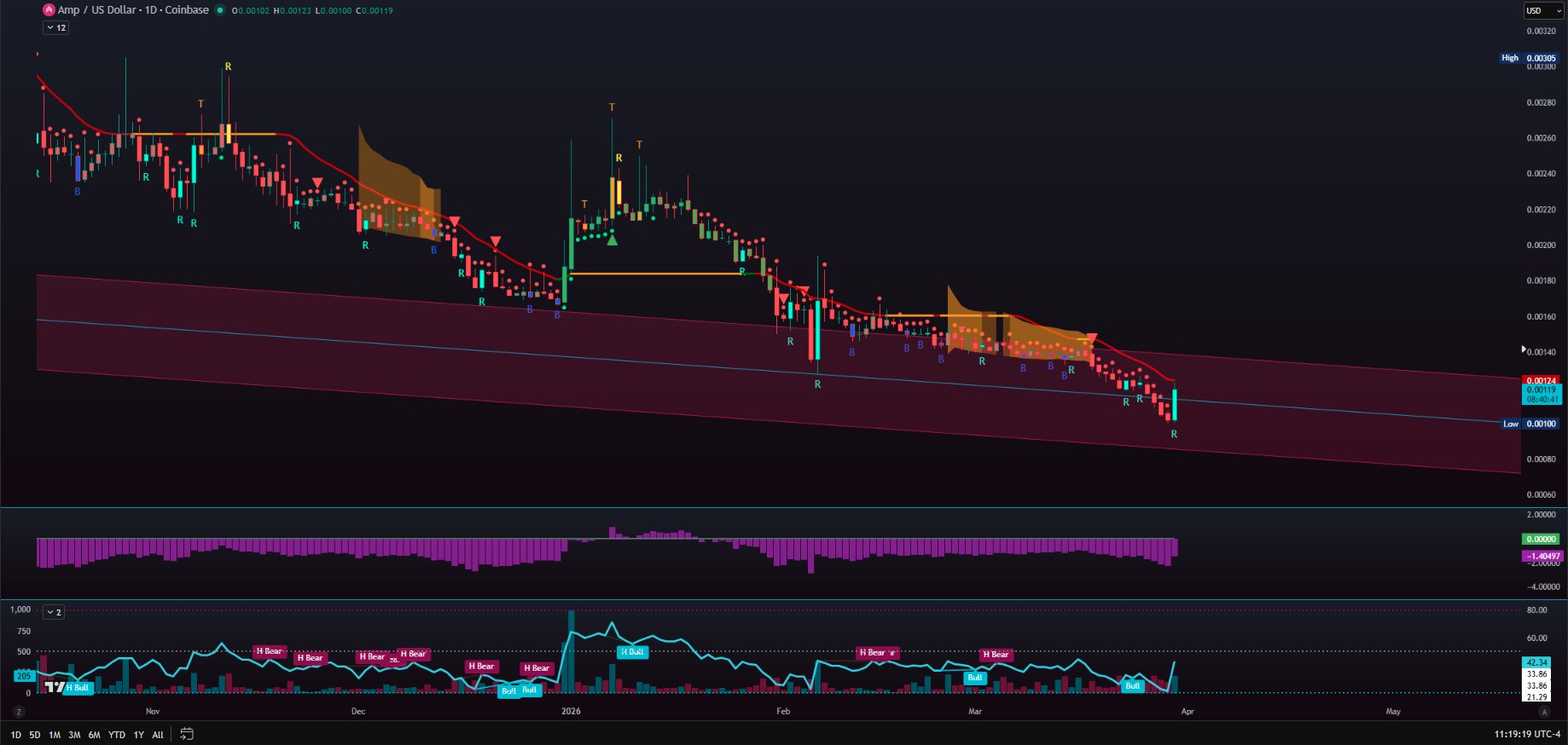 AMP shows a bounce of over 20% on the 4-hour chart, indicating a potential reversal signal.