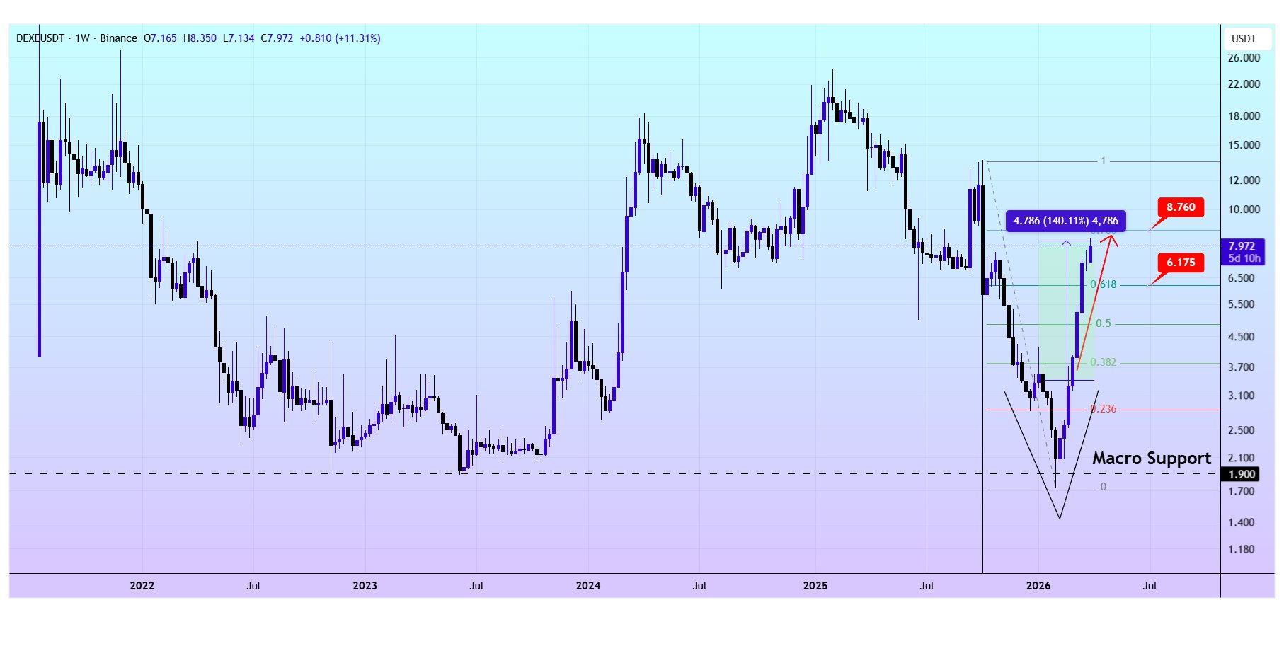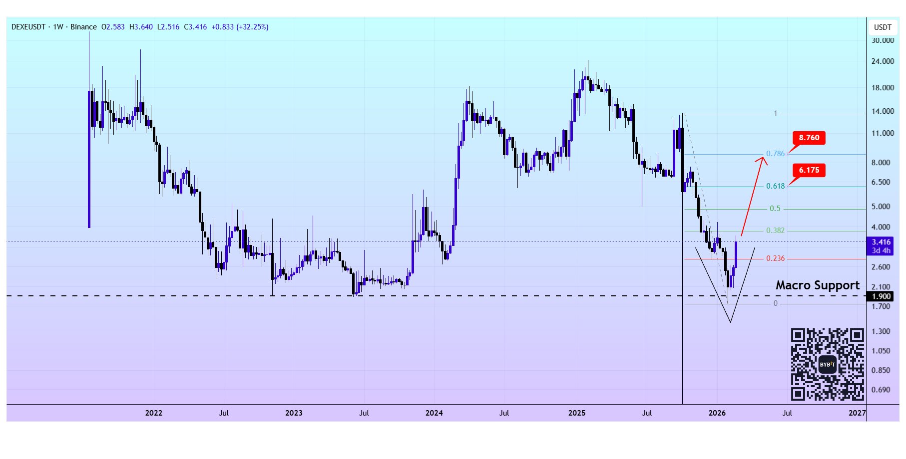 DEXE's V-shaped rebound has secured a 140% profit, targeting $6.175 and $8.760.