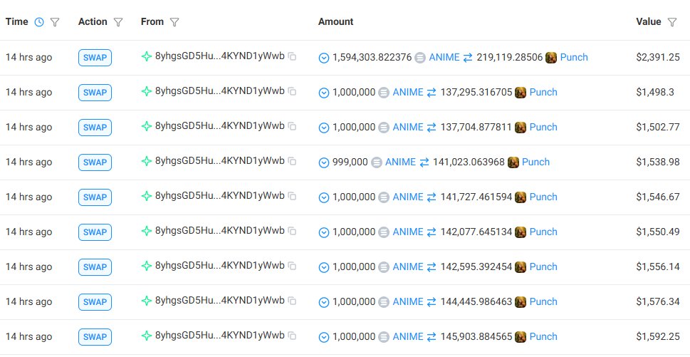 They then round tripped $14.6K worth of $ANIME back into $PUNCH effectively rotating back in after the loss https://t.co/auCURQQTEE