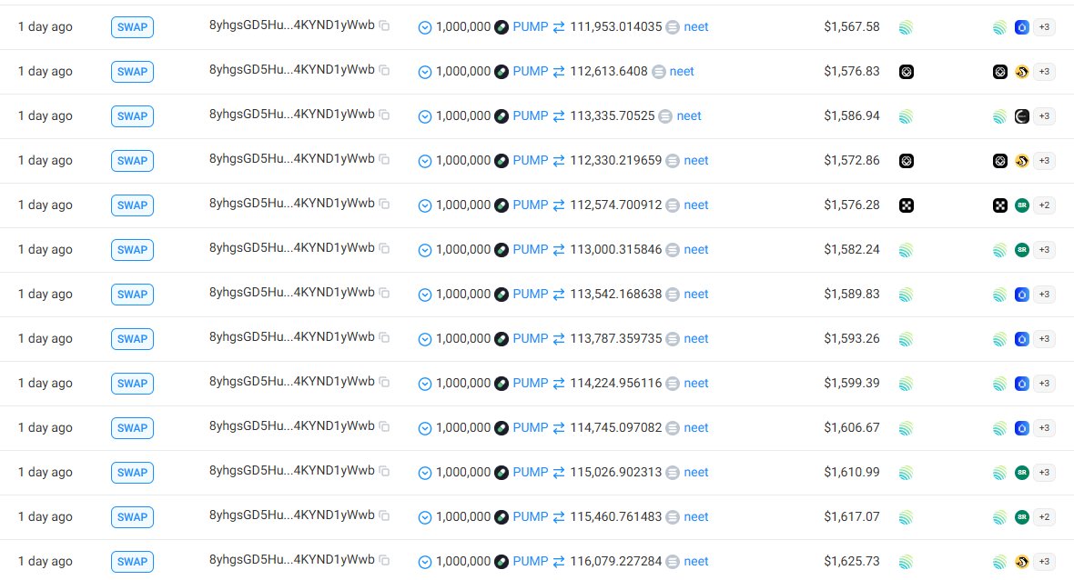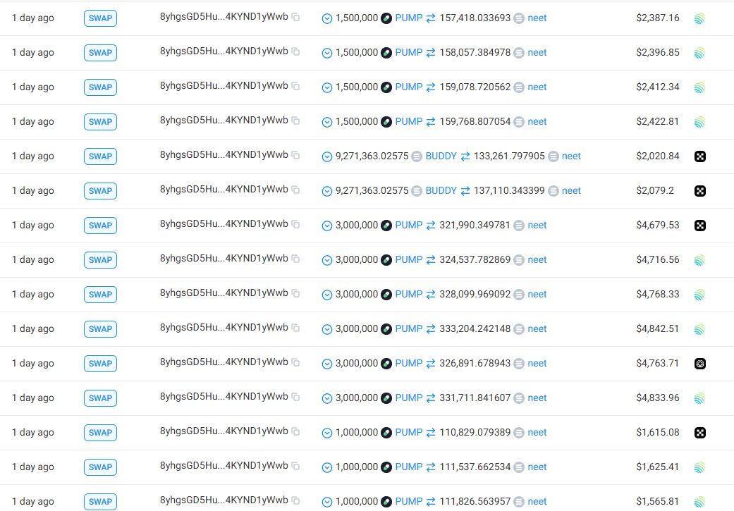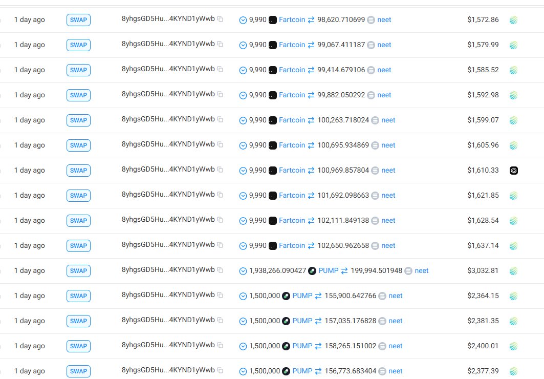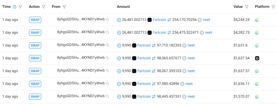 Yesterday, the wallet rotated roughly $60K worth of $PUMP and $24.5K worth of $Fartcoin into $NEET, that’s about $84.5K into $NEET