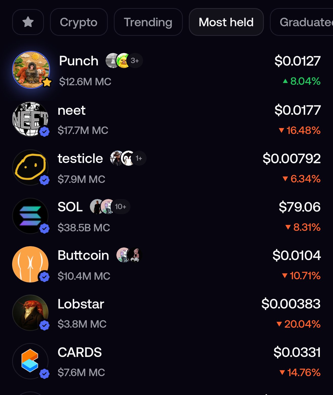 PUNCH is the most held token on @tryfomo, up 8.04% today.