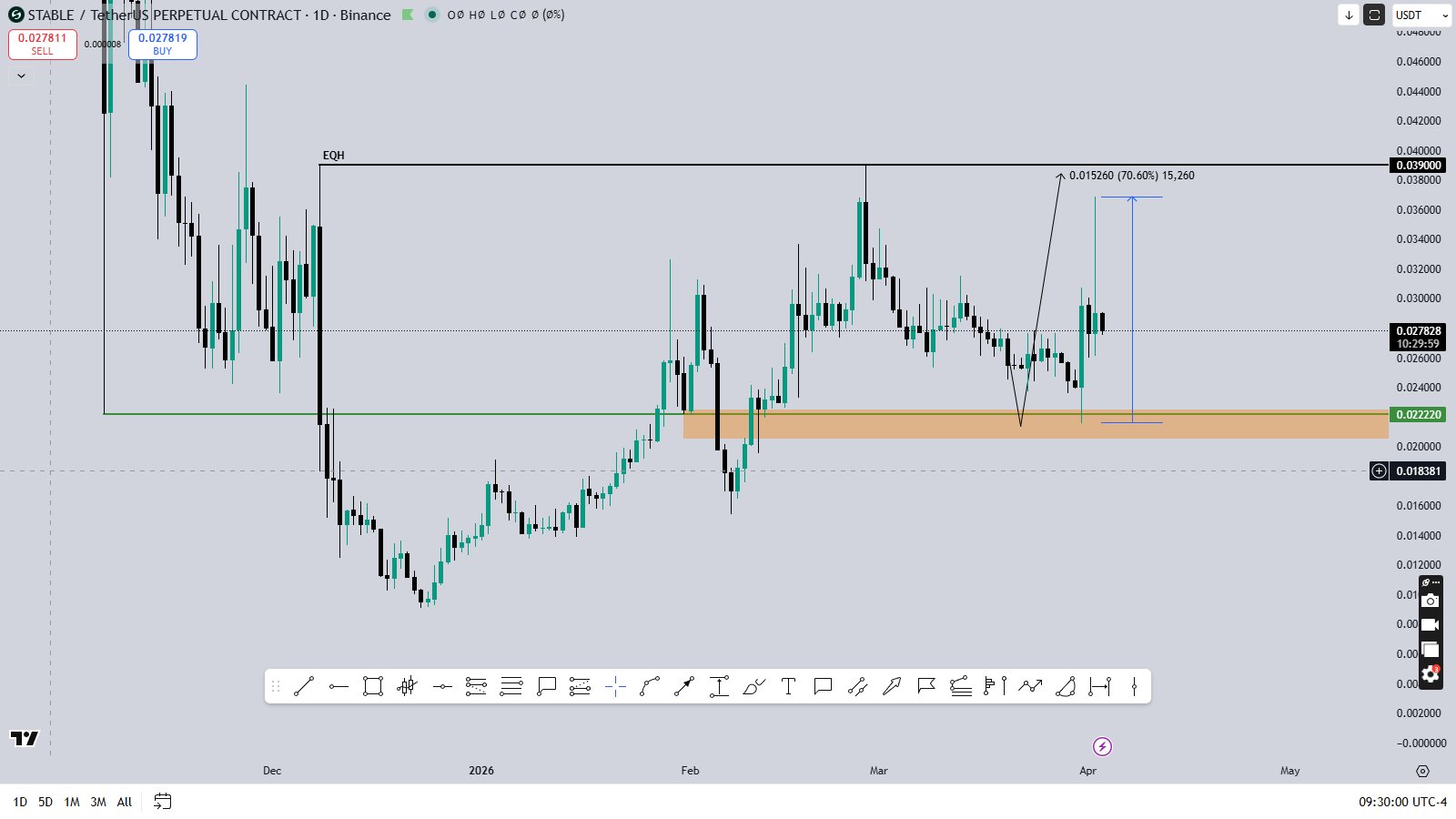 If STABLE retests the range low, it could provide a long entry, potentially achieving a substantial upward move.