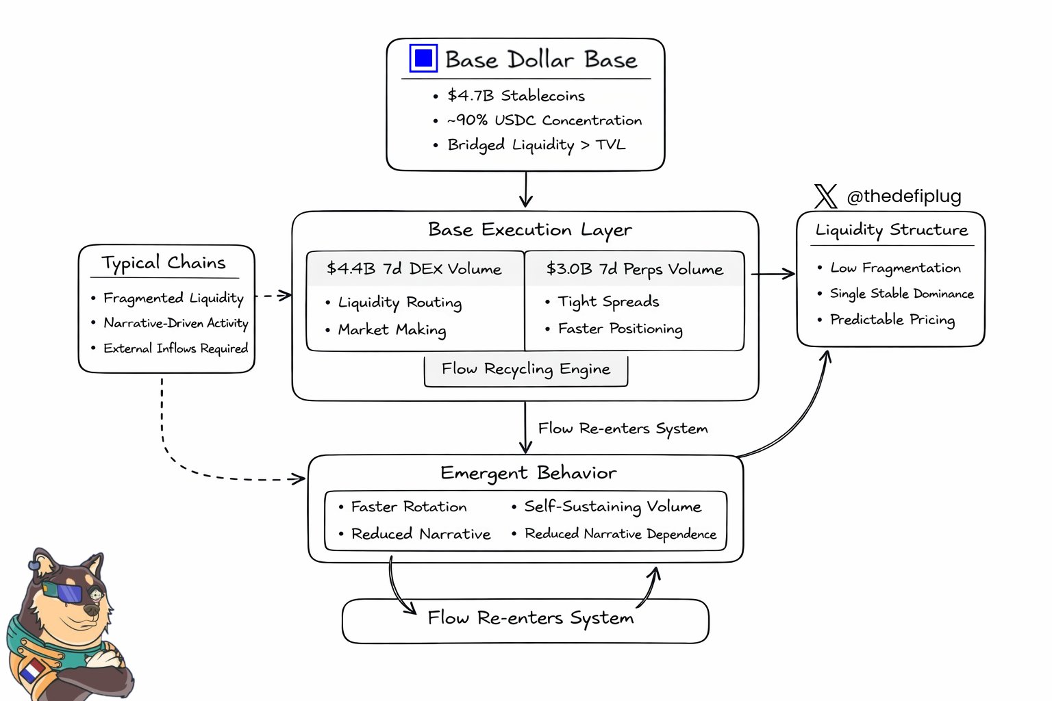 Base chain has $4.7B stablecoins and high trading volume, forming strong self-circulating liquidity.