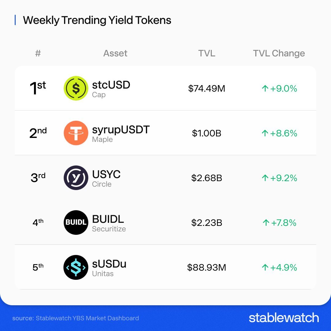 @stablewatchHQ dropping another update, their top trending yield tokens. Notice anyone trending AND being top 5 on @DefiLlama?