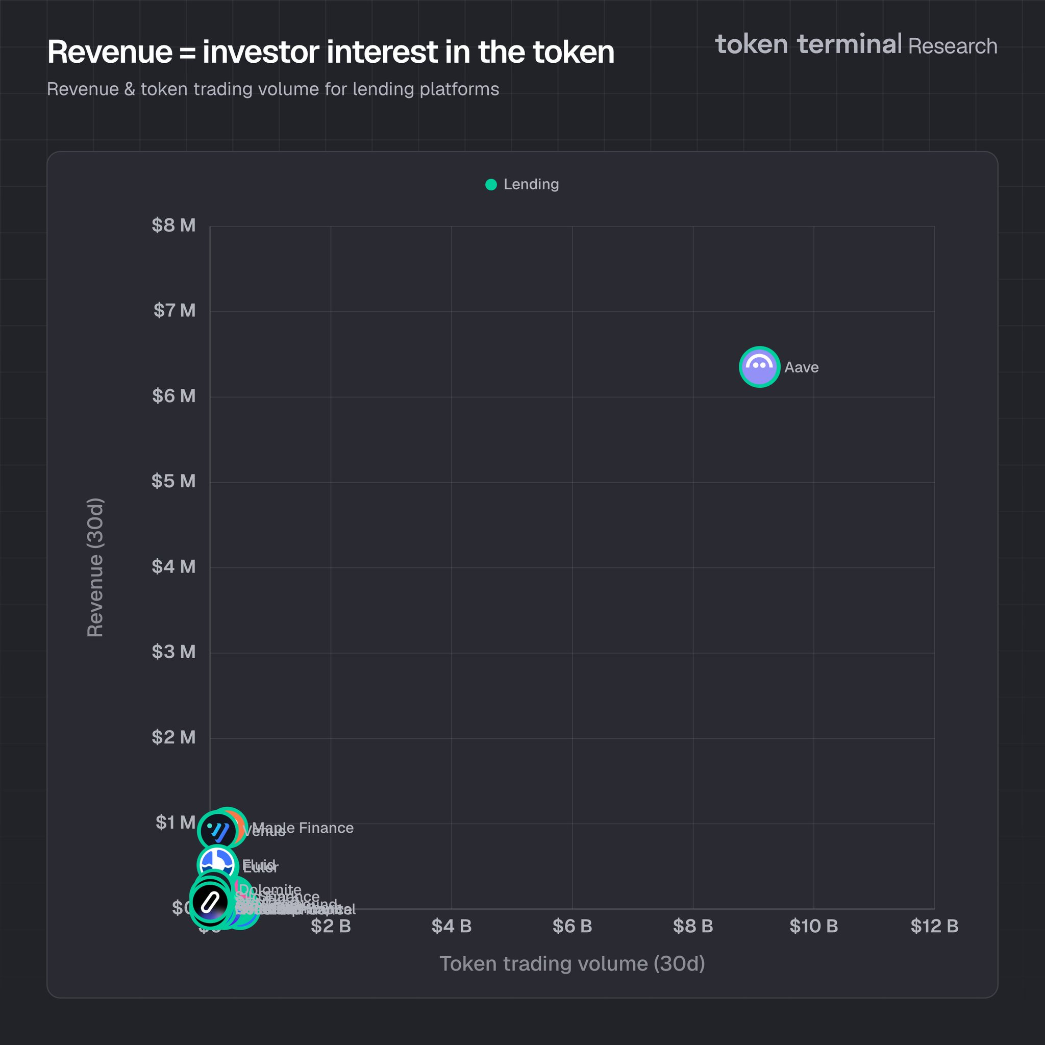 – Aave now holds ~62% market share in lending → a level of dominance that would be considered monopolistic in TradFi.