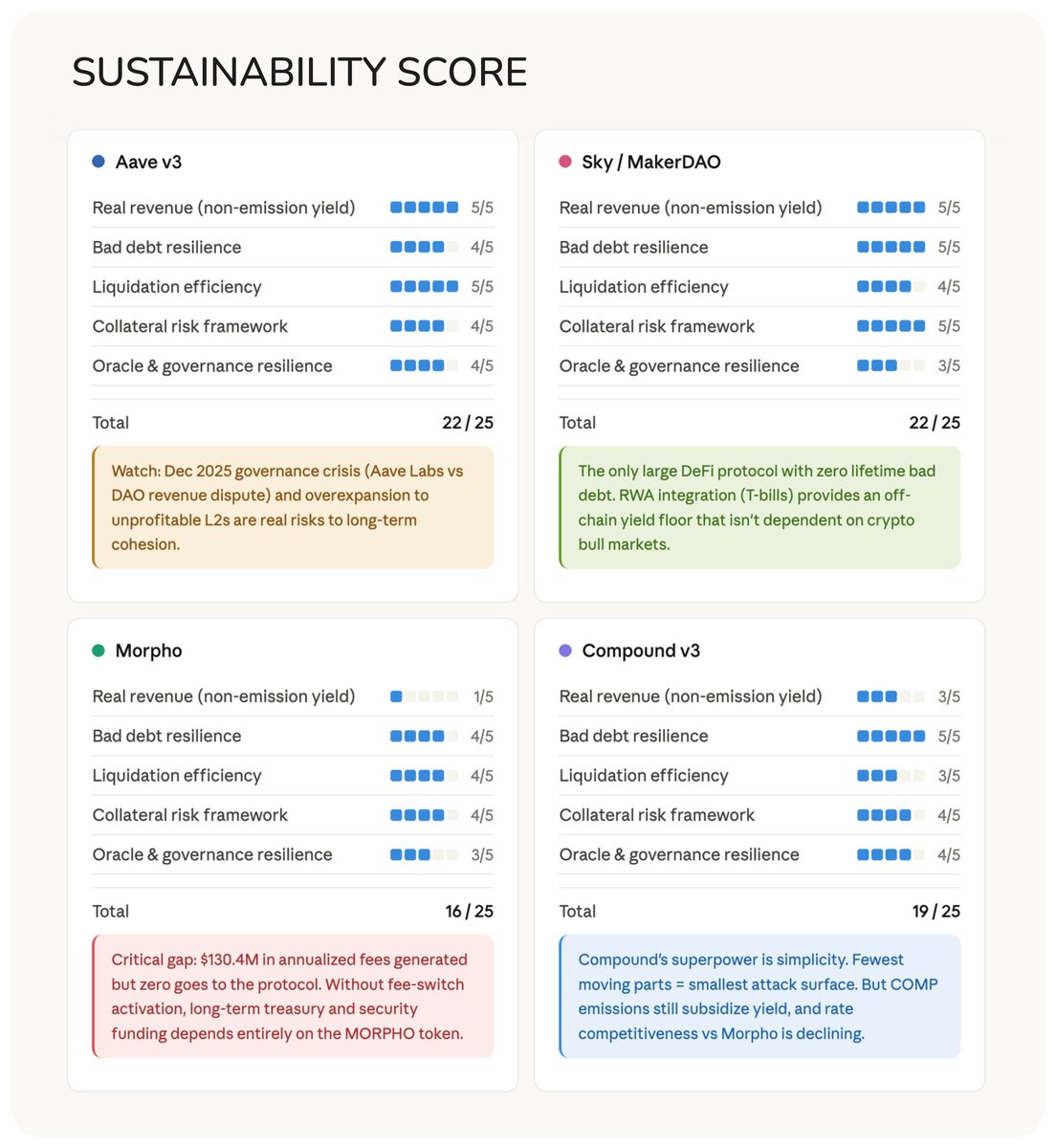 IMHO, what actually matters is whether a protocol can survive the next crash without socializing losses onto its depositors, and very few pass that test.
