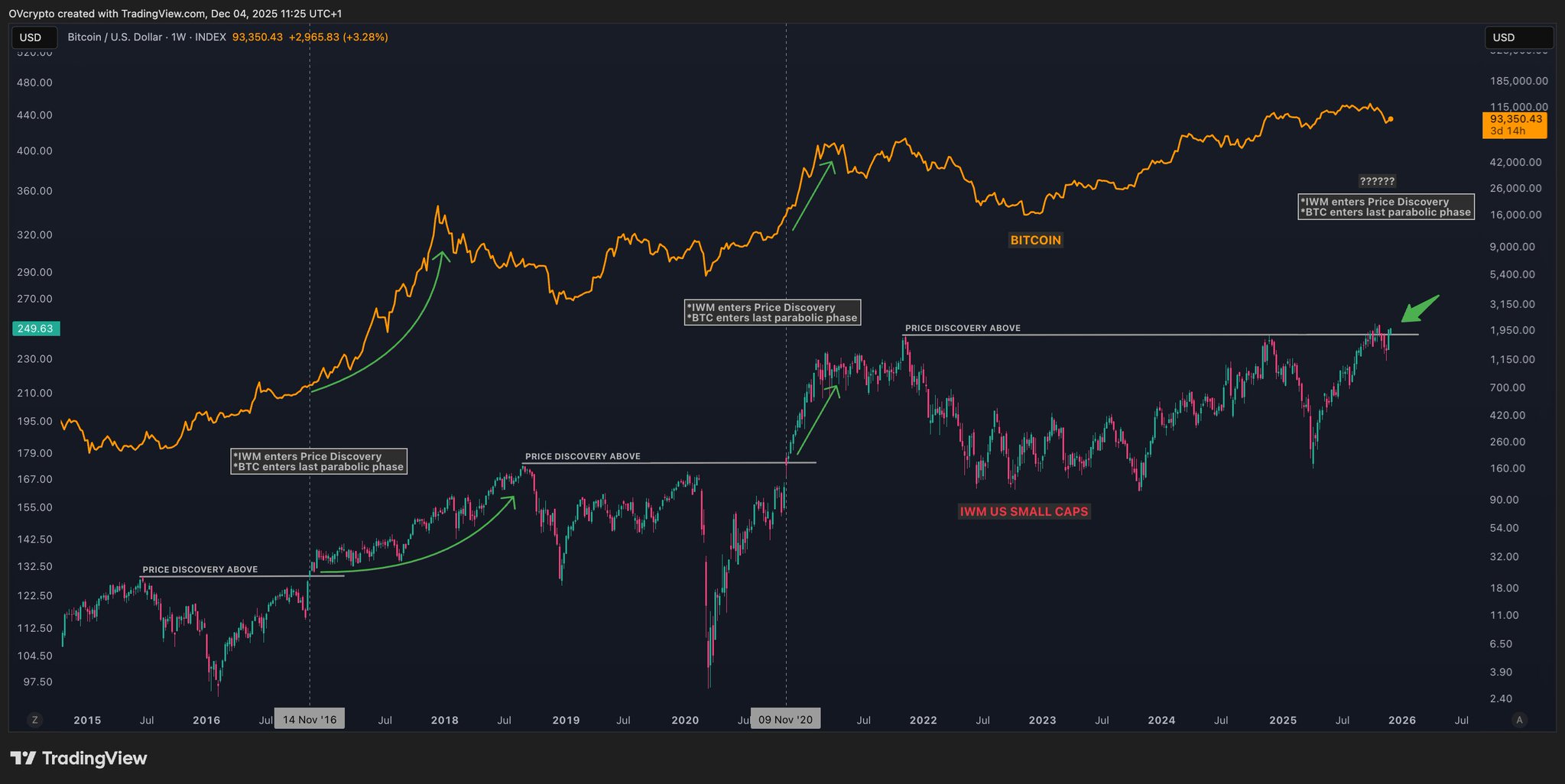 IWM breaks above its 2021 ATH, expected to enter a sustained price discovery phase together with BTC.