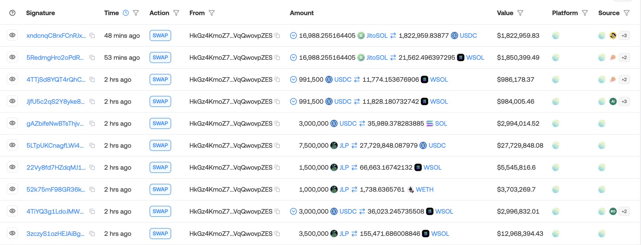 Breaking: According to MLM monitoring, a Drift Protocol-related address (HkGz4Kmo...pZES) has recorded approximately $270.6 million in abnormal fund movements, accounting for around 50% of its TVL. The assets primarily include about $155.6 million in JLP, $60.4 million in USDC, $11.3 million in cbBTC, among others. Helius CEO mert stated that while the situation is not fully confirmed, on-chain signals indicate a potential exploit. No official statement has been released by Drift.