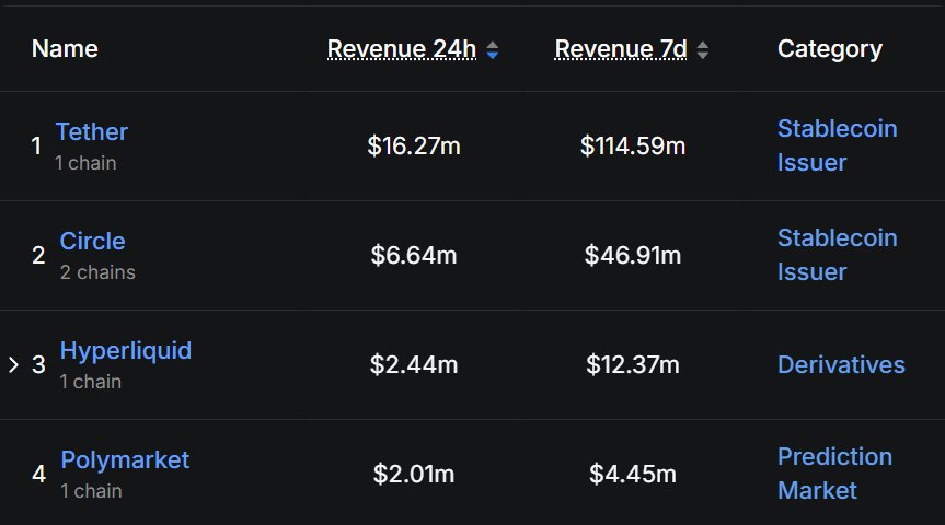 Stablecoins, perpetual contracts and prediction markets are the three main sources of revenue in the crypto space.
