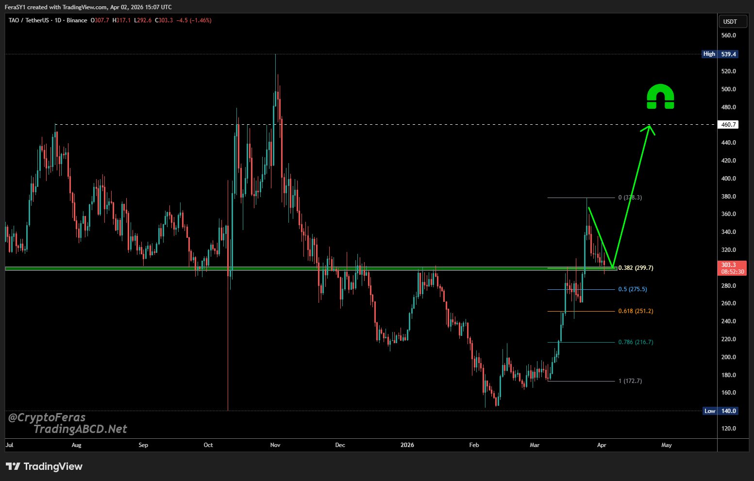 TAO's bullish continuation structure remains solid; the author has opened a long position and is profitable, and technical analysis points to a strong upside.