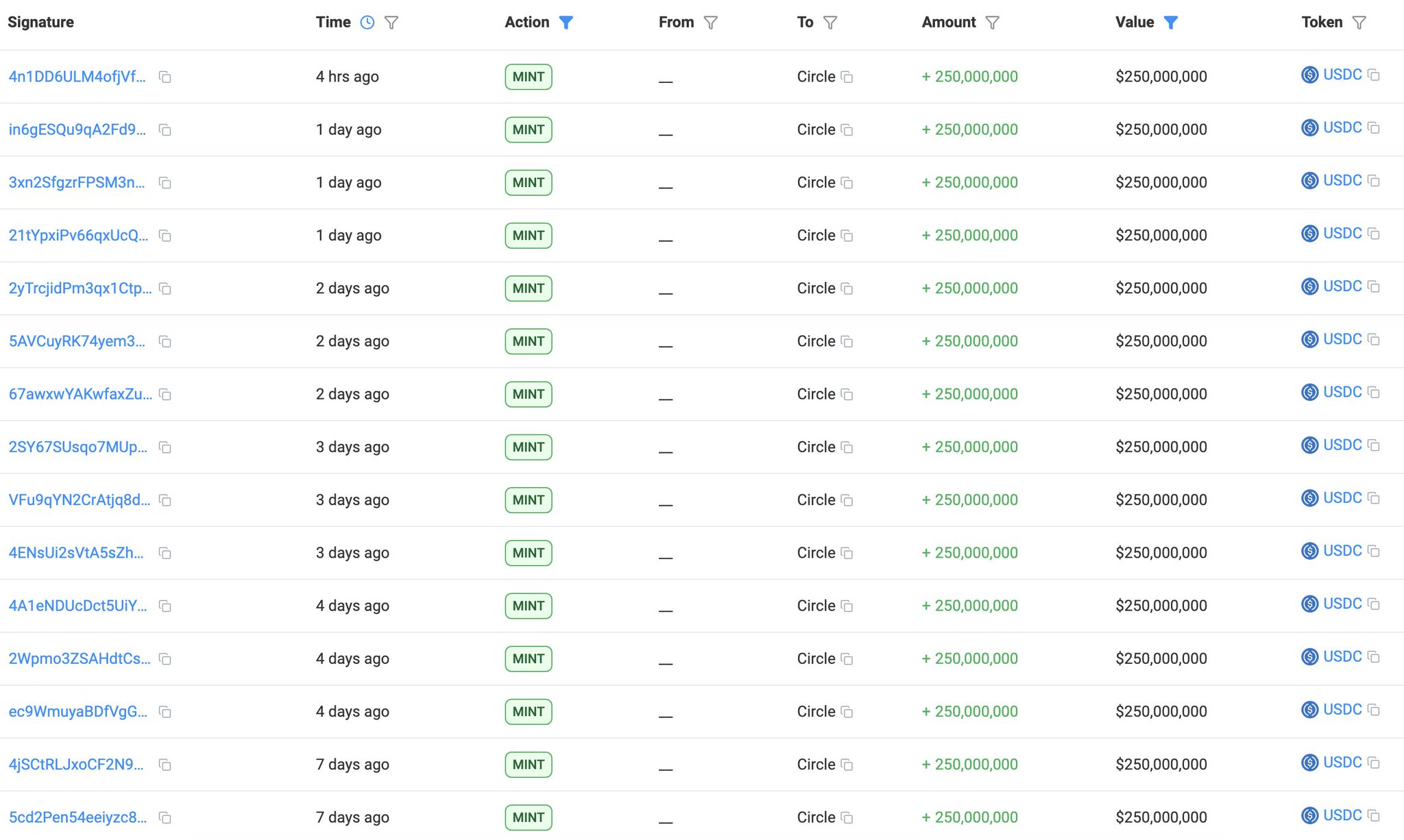 In the past month, #Circle has minted a total of 10.25B $USDC on Solana