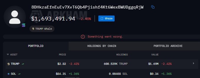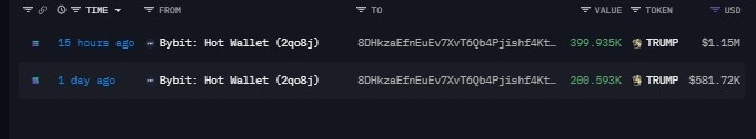 A whale withdrew over 600,000 TRUMP tokens from Bybit, worth $1.7 million, possibly for strategic positioning.