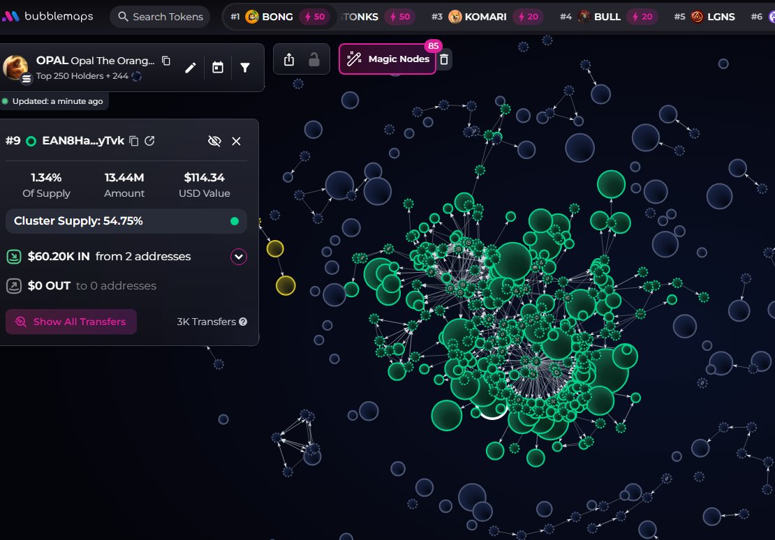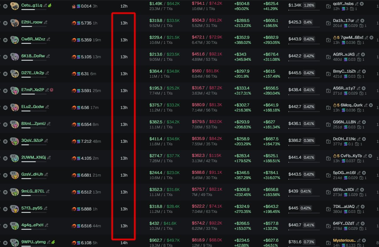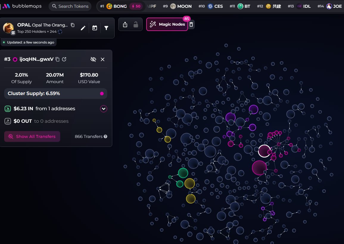 $OPAL (CA sB7SkzCotrxBNyCxcmKqDDKkUWQnJhaKprS6s9xpump) doesn't have snipers, insiders have 3.8% per devsnightmare. moneymancalls, LargeSureSwift, YipsinMonte, xunle, Silent, 0xsolomon are top holders. The coin appears to be slightly bundled with 13h old wallets.