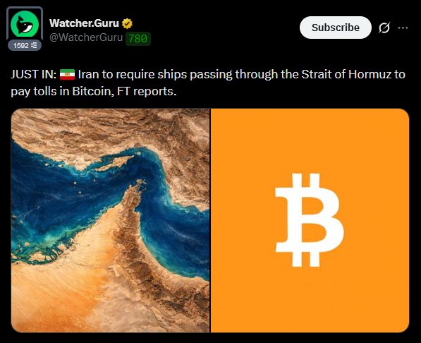 > Iran demands Bitcoin payments up to $2M per tanker for Hormuz transit