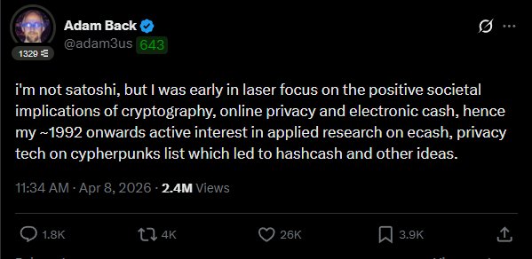 > NYT names Adam Back as Satoshi; Back firmly denies being Bitcoin's creator