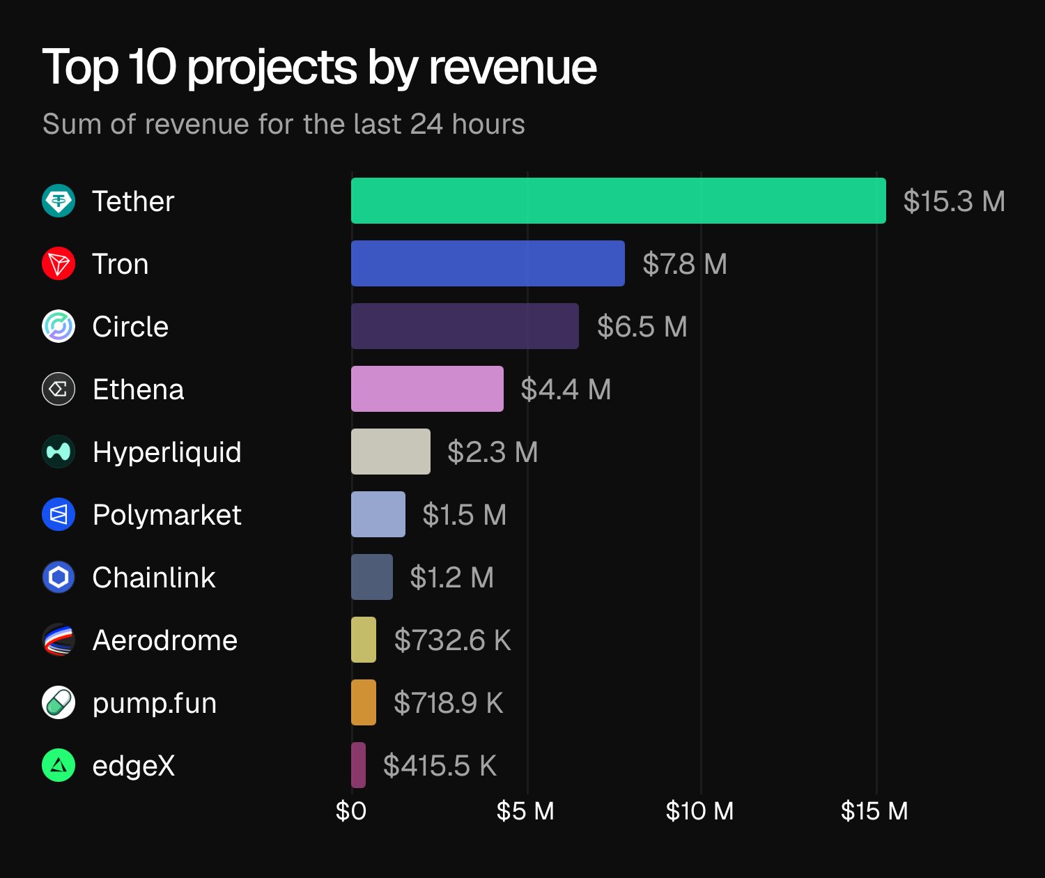 Ethena ranked fourth in revenue over the past 24 hours, surpassing Hyperliquid.