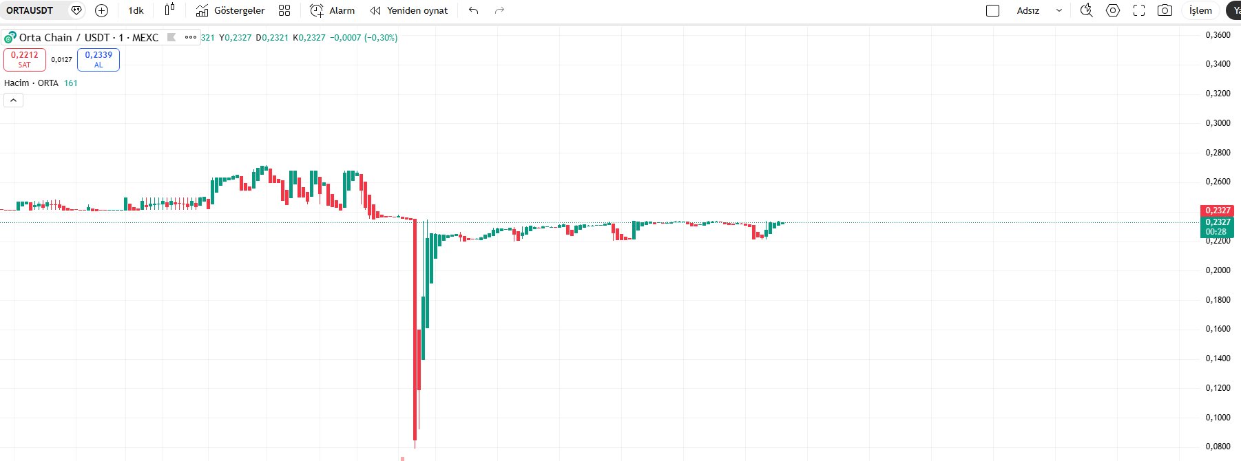 A Turkish project $ORTA dropped about 30% in one minute today and returned to its previous level in the next 5 minutes.