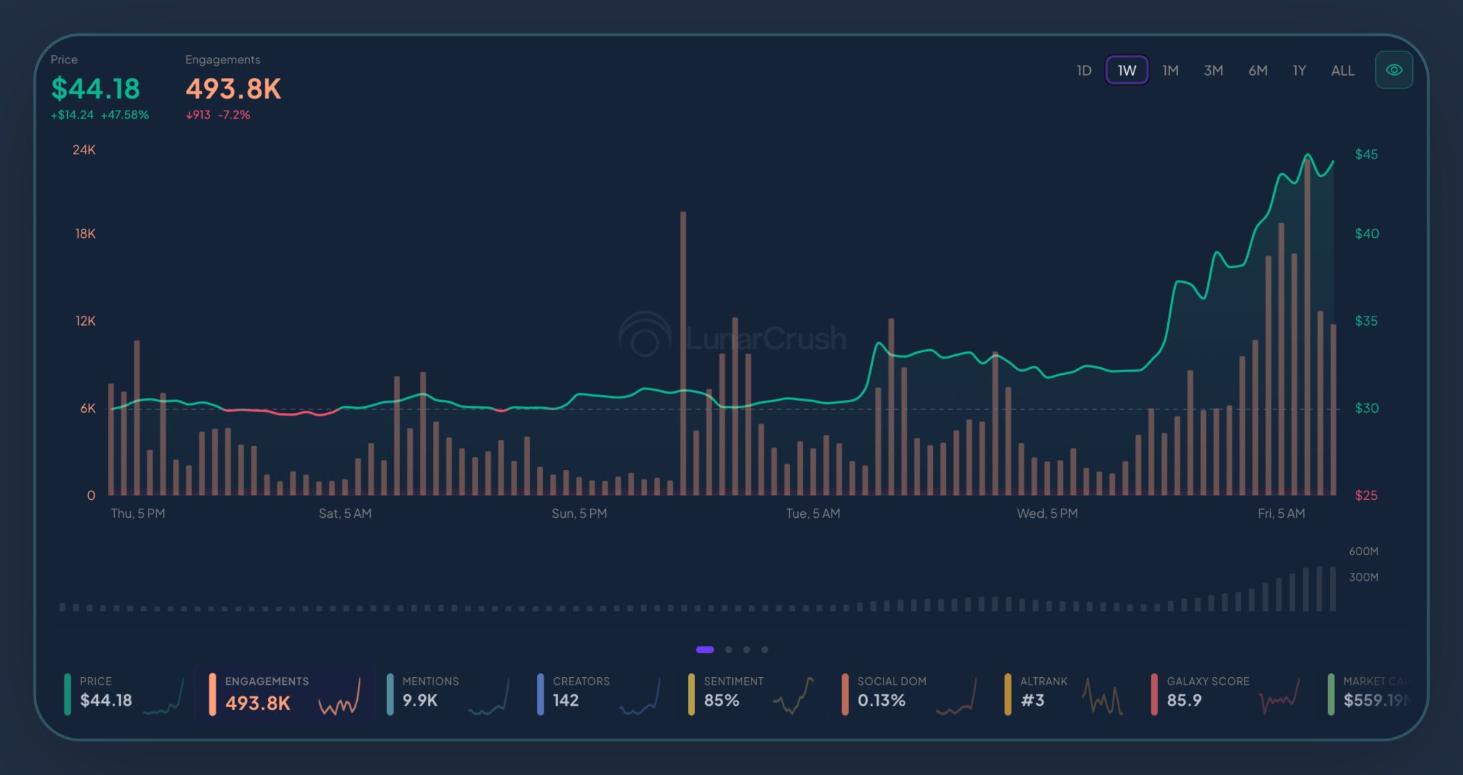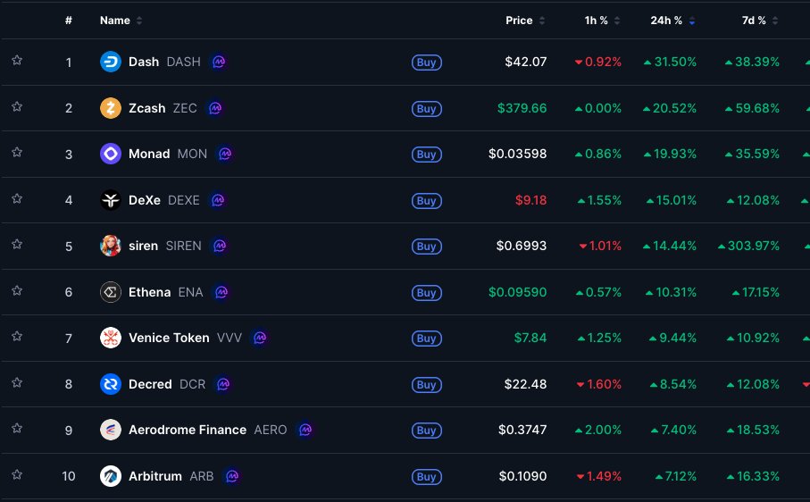 DASH benefits from the privacy narrative, new integrations, and institutional interest, with both price and social metrics soaring.