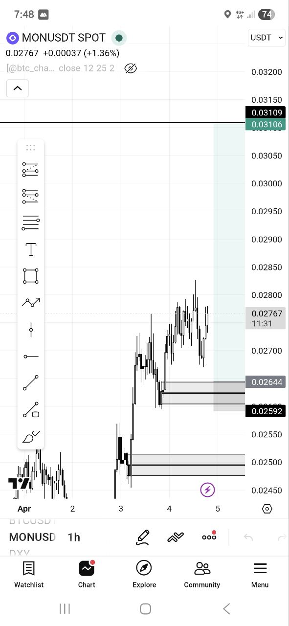 The author made a profit on a MON/USDT long as the trend is bullish.