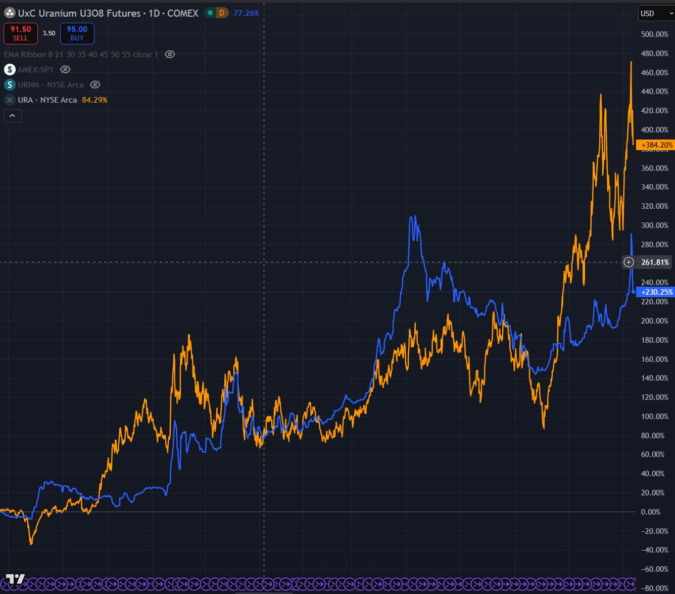 NOW, this is a DIRTY HEDGE. URNM is not 1:1 with Uranium.