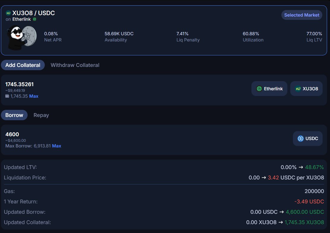 To mitigate this danger, I would consider taking the funding earned and bridging it over to Etherlink and paying down the debt as frequently as possible OR using an even lower LTV.