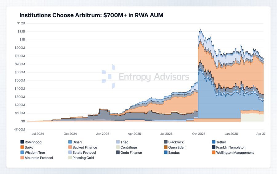 Arbitrum becomes the cornerstone for financial institutions' asset tokenization, with RWA AUM exceeding $700 million.