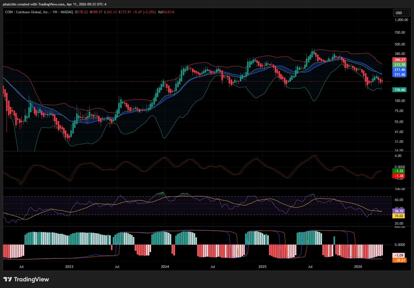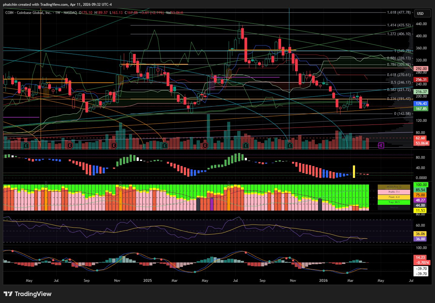 With huge volume seen back in February, I think $COIN has likely bottomed and is just consolidating here.
