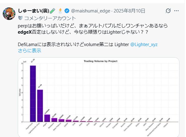 The Lighter project's trading volume ranks second, and the author considers it a trending investment opportunity worth watching after Hyperliquid.