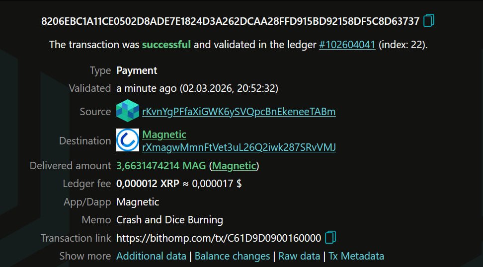 🟢Burning $MAG worth 3600$ from Dice and Crash
