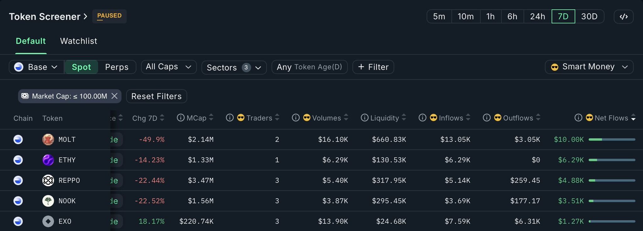 🏆 Top Net Flows (7D) — Smart Money