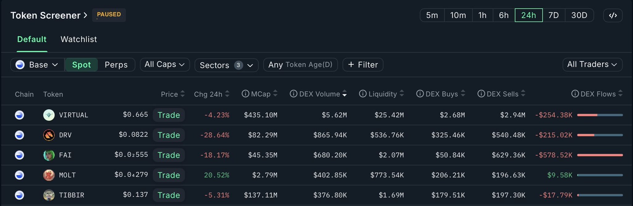 Smart traders starting to nibble dips on a handful of agents — flows still tiny, but at least not zero.