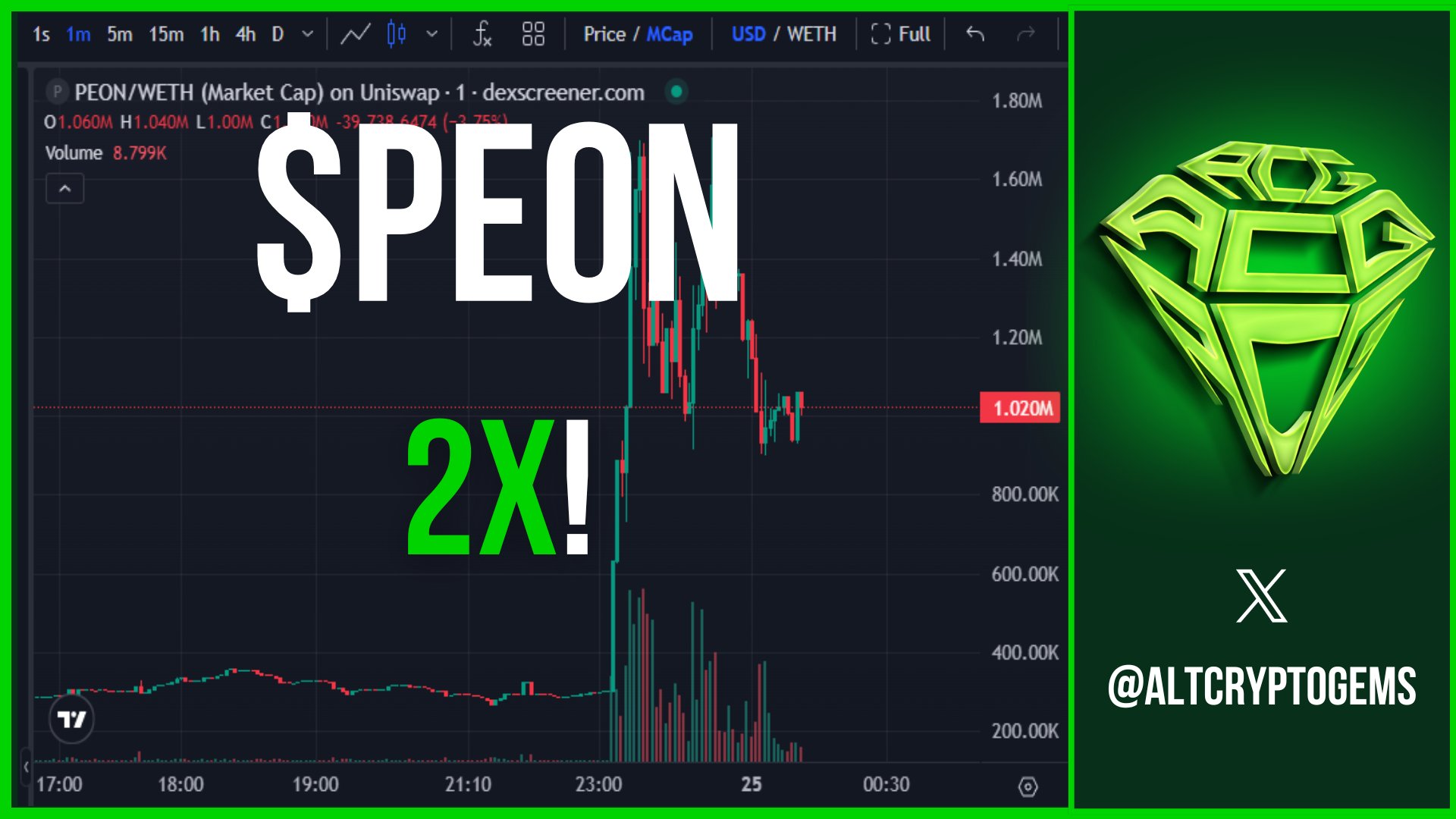Took its sweet time, but $PEON finally started moving in a big way. Hit a 2x from mention and even more if you scooped lower and were patient. https://t.co/gBTBAQDG15 https://t.co/tS29vZwsK7