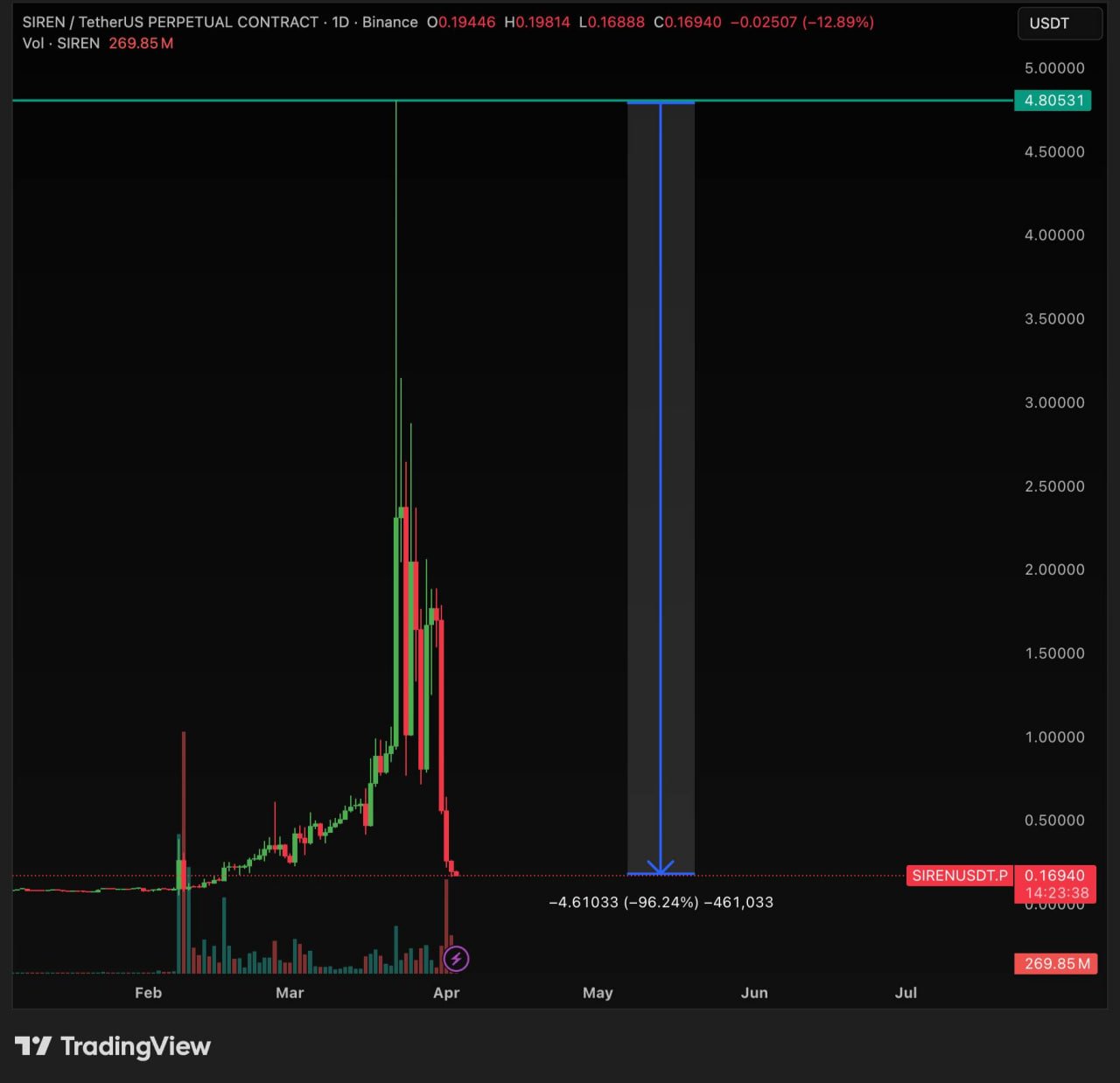 SIREN's market cap fell from $3B to $100M, and the chart looks like a life sign in critical condition.