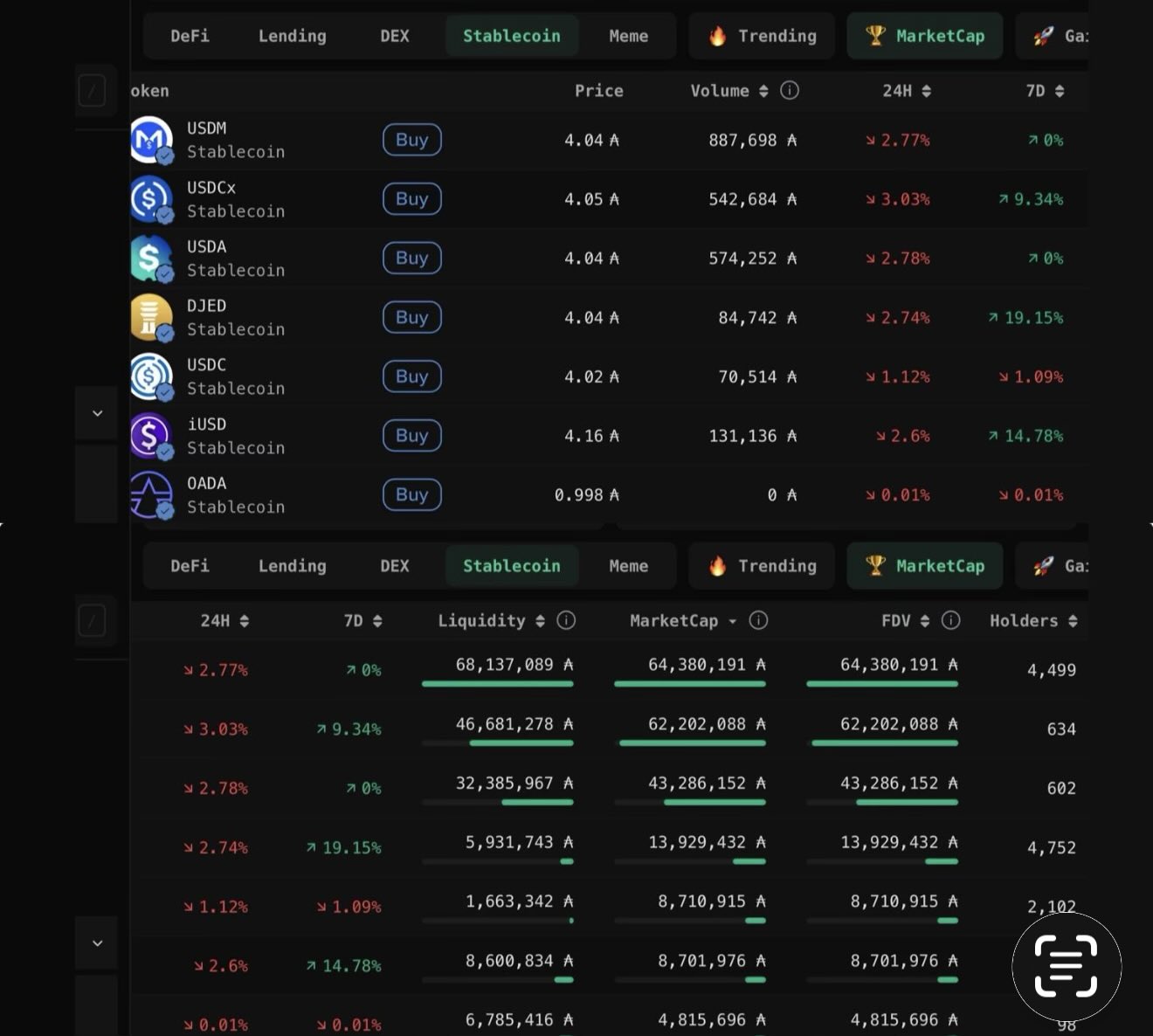 USDM leads in trading volume and liquidity within the Cardano ecosystem, becoming the dominant stablecoin settlement layer.