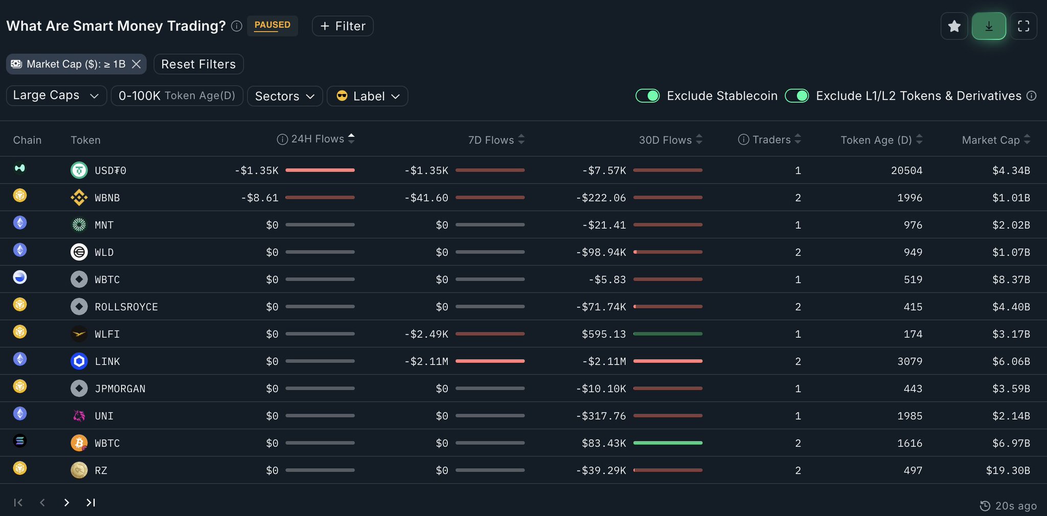 Smart money is not buying altcoins, on-chain data shows that the majority of altcoin outflows are negative.