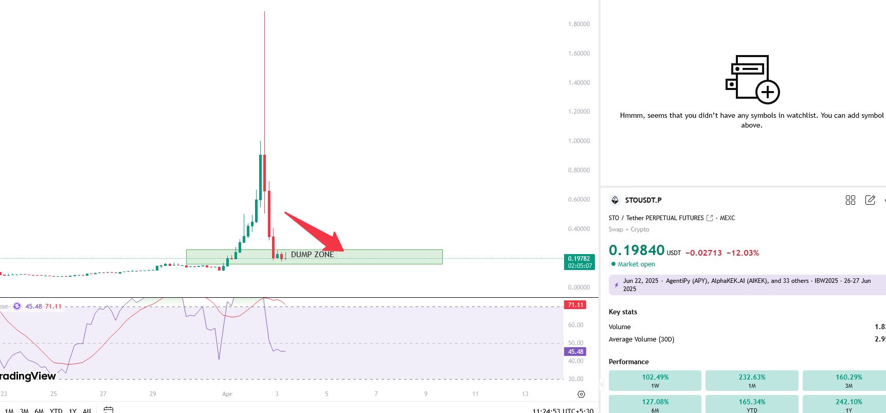 48 23 1.10K Lire l'original >Tendance de STO après le lancementExtrêmement baissier