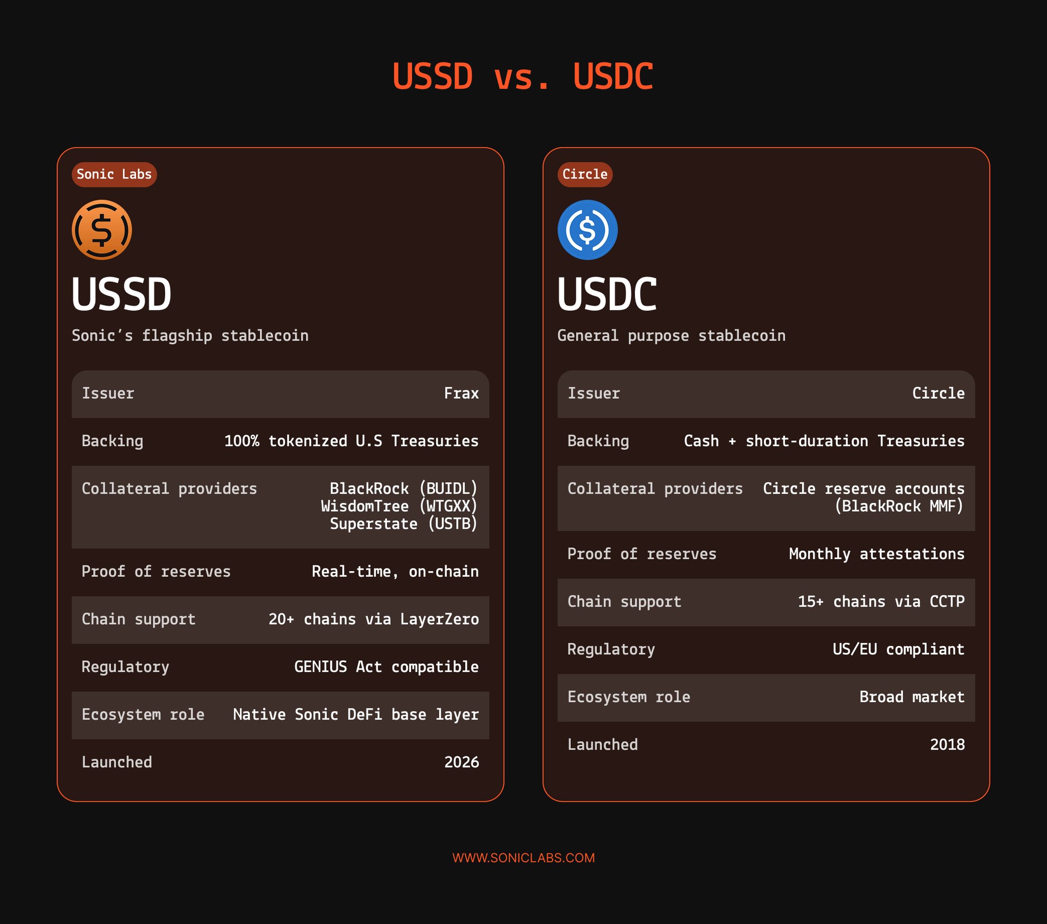 Sonic Labs launches the USSD stablecoin, emphasizing its advanced reserves and regulatory compliance by comparing it with USDC.