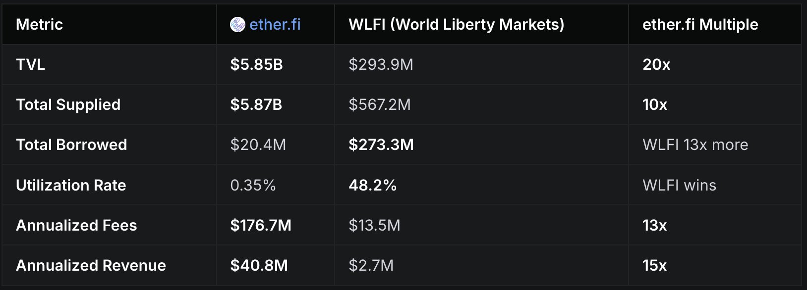 ETHFI and AAVE are severely undervalued relative to WLFI, with fundamental data supporting upside for ETHFI and AAVE and downside for WLFI.