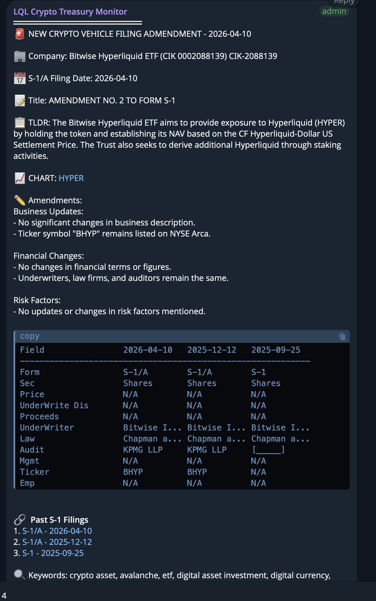 SEC Filings after market close: @Bitwise file a @HyperliquidX S-1/A Amendment to their ETF application, updating ticker to BHYP listed on NYSE.