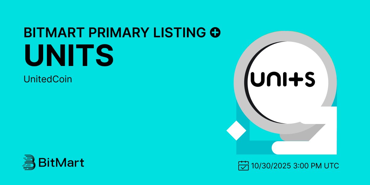BitMart announced that UnitedCoin (UNITS) will be listed for trading on October 30, 2025, offering the UNITS/USDT trading pair.
