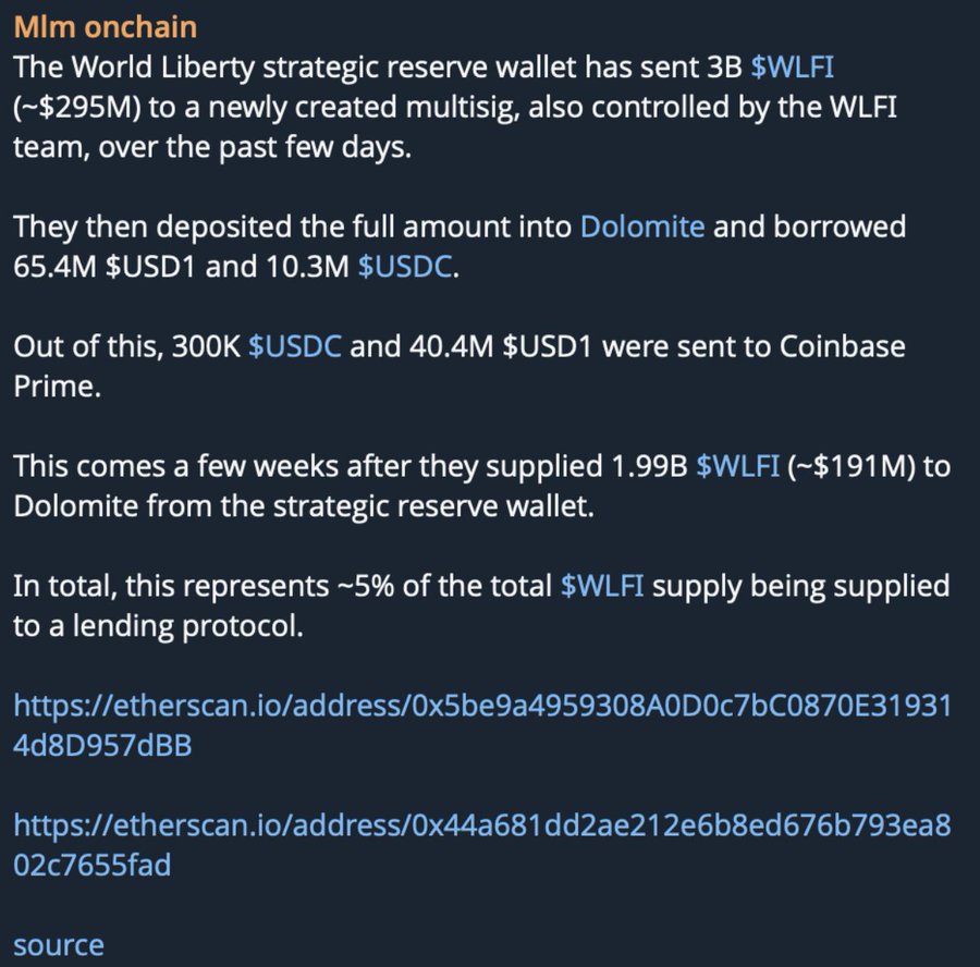 recently, wlfi team deposited 5b $wlfi tokens (worth ~$450m) across two wallets as collateral on dolomite: