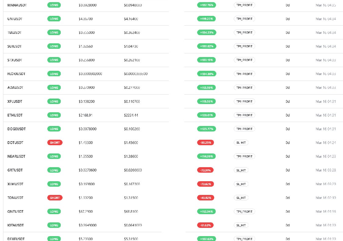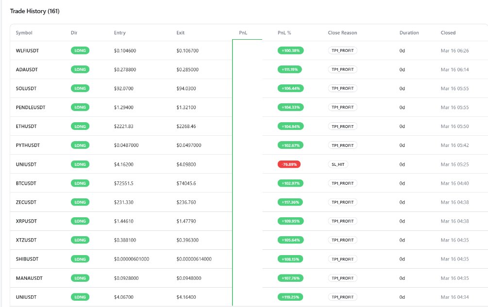 The author displayed the trade history of the past 24 hours, with most long positions earning high profits.