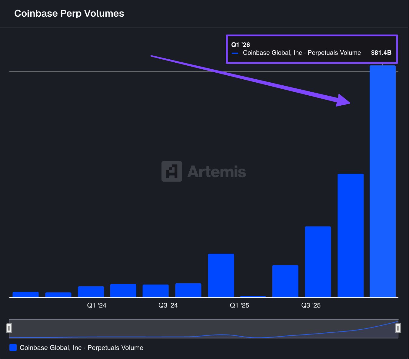 Coinbase Q1 ’26 perpetual contract trading volume surged to $81.4B