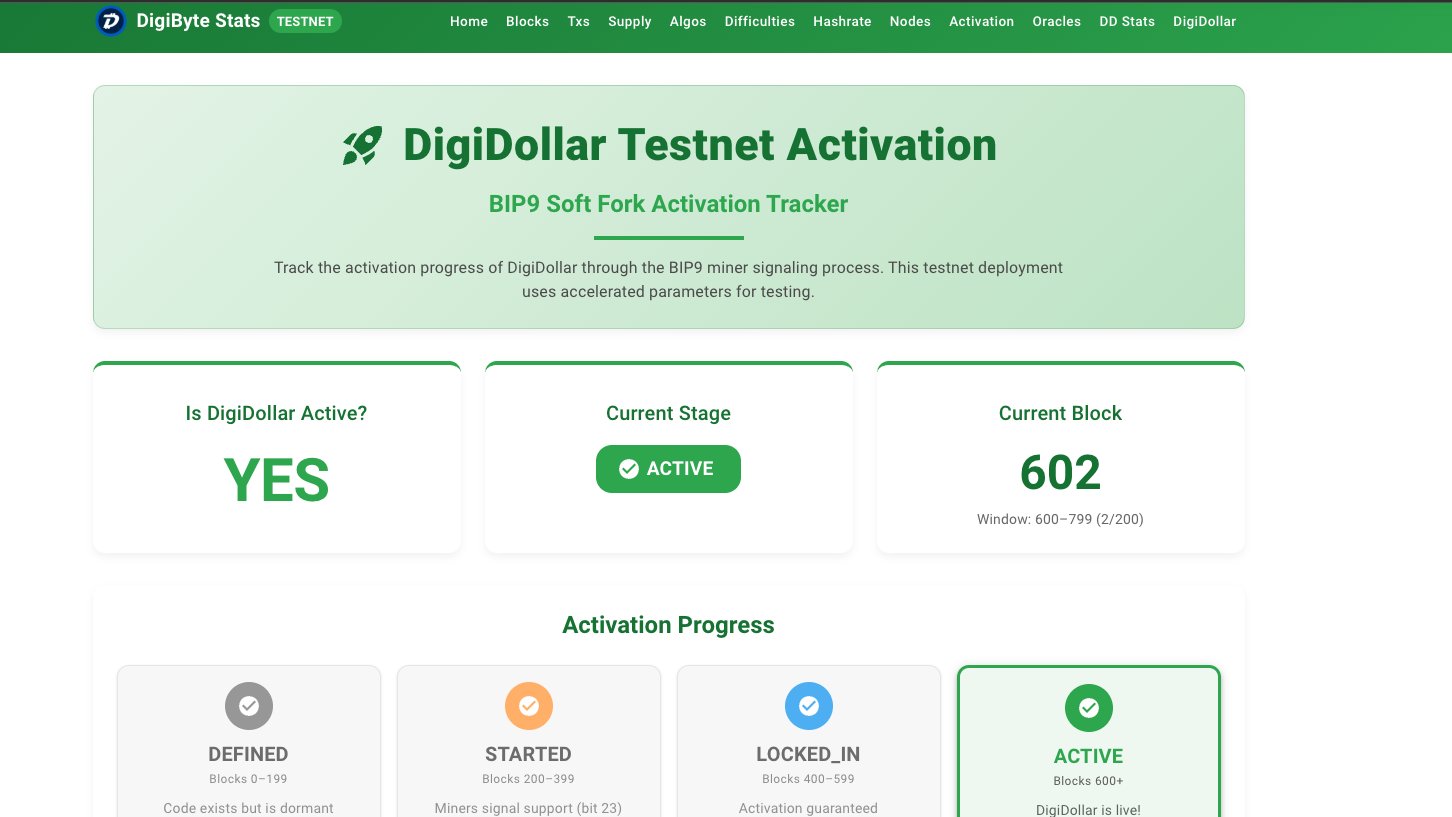 DGB's DigiDollar has been successfully activated on the RC28 testnet, preparing for its mainnet launch.