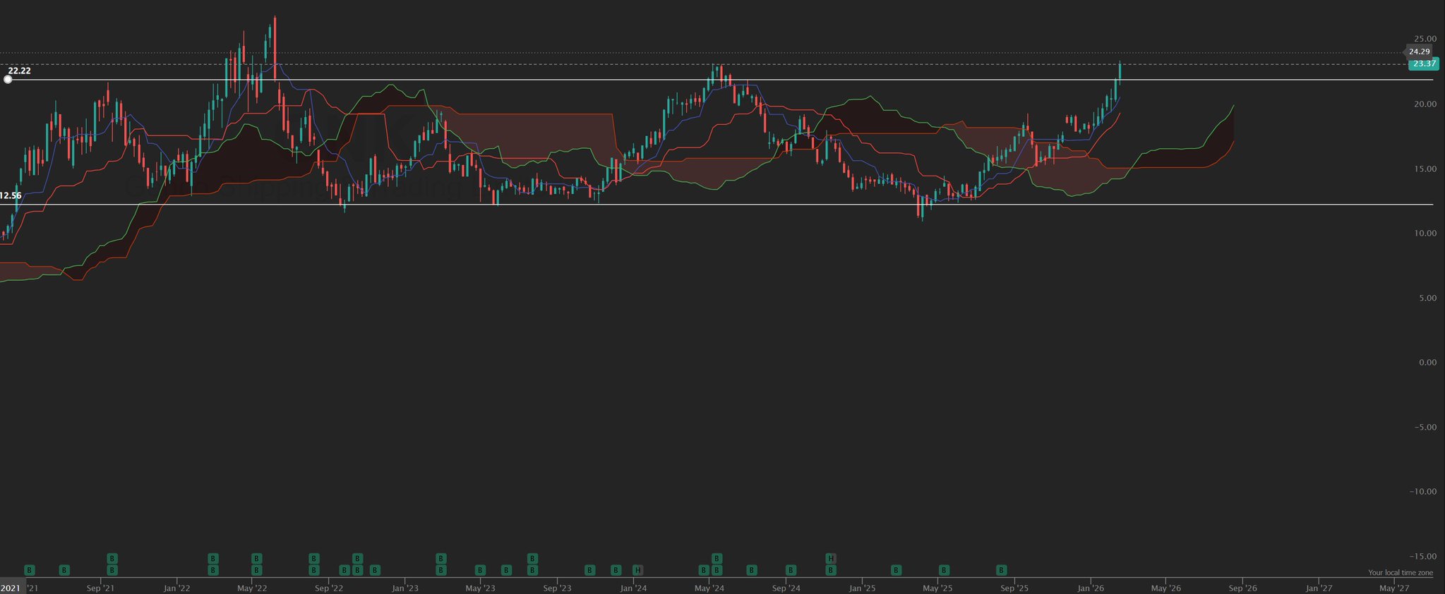 GNK突破多年盘整区间,作者预计将有一次重大上涨。