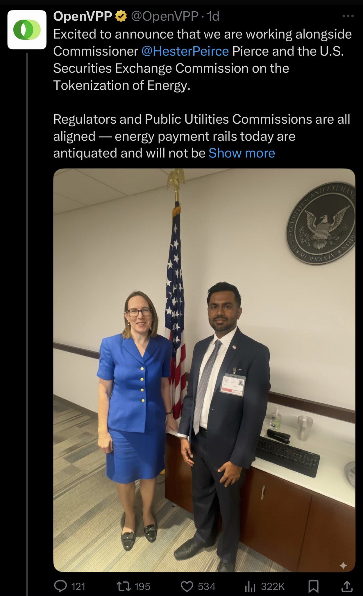 This week the project @OpenVPP ($OVPP) claimed to be working with the US government on the tokenization of energy.