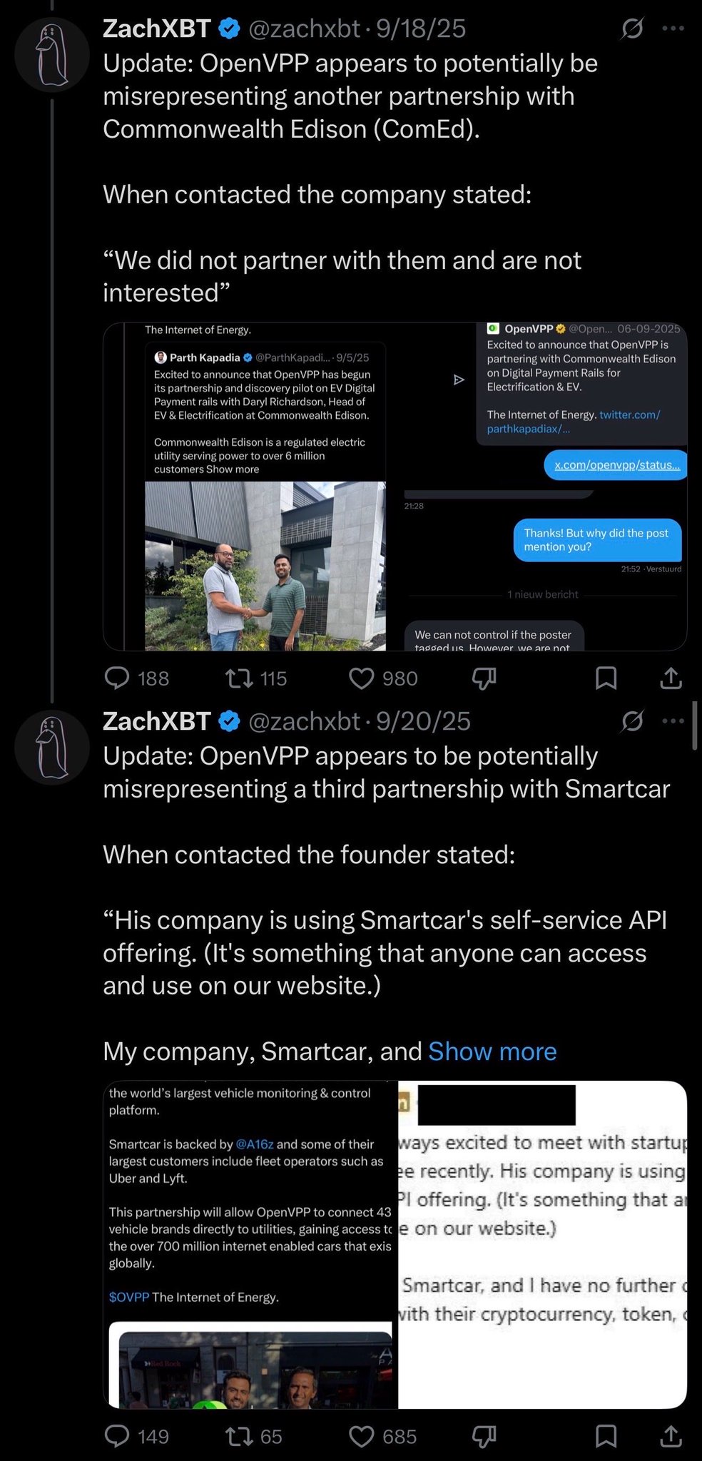 ZachXBT exposes OpenVPP's false advertising and collaboration with SEC officials, with the official's clarification later hidden, warning of fraud risk.