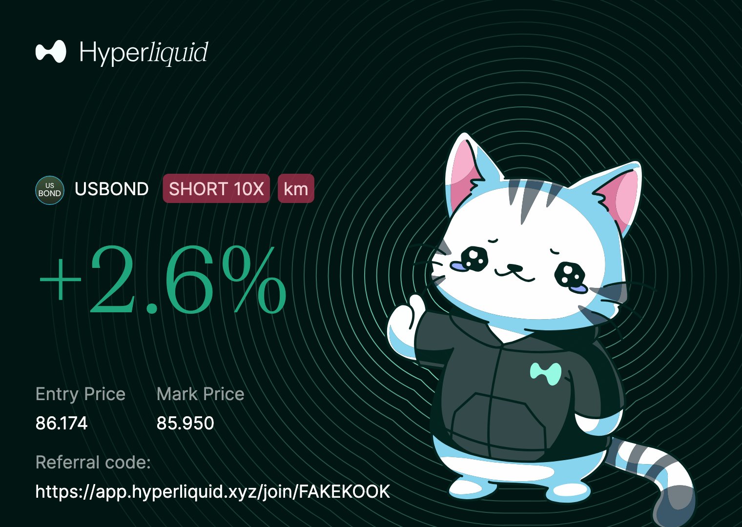 Hyperliquid platform USBOND 10x short position gains 2.6%.