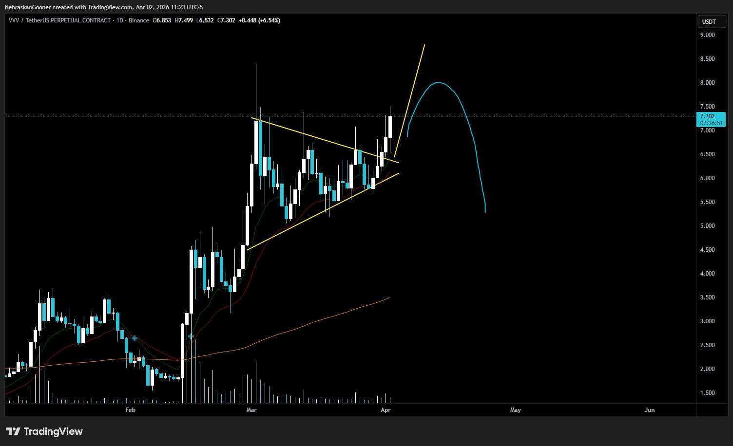 VVV is showing strong performance, consolidating above support and approaching a key break‑out level.